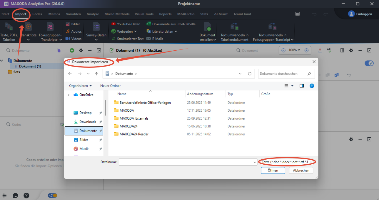 4) Jetzt können Sie damit beginnen, Ihre Dokumente/Daten etc. zu importieren: