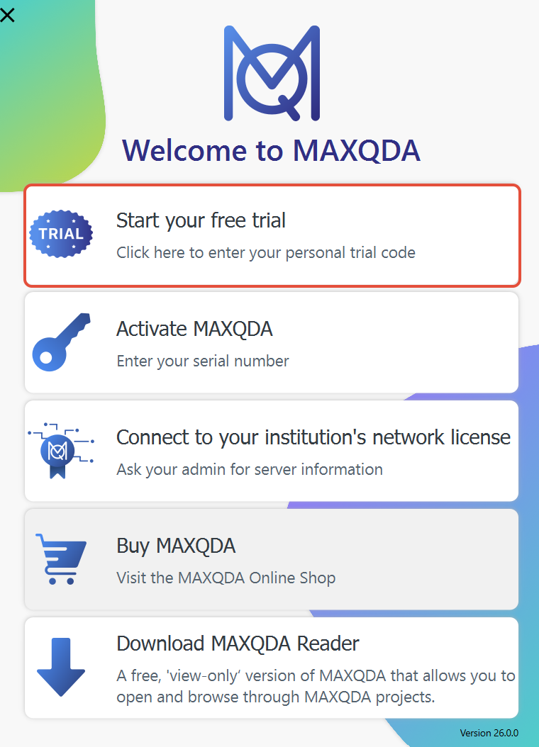 • Select the trial code, copy it and paste the serial number into the MAXQDA activation window