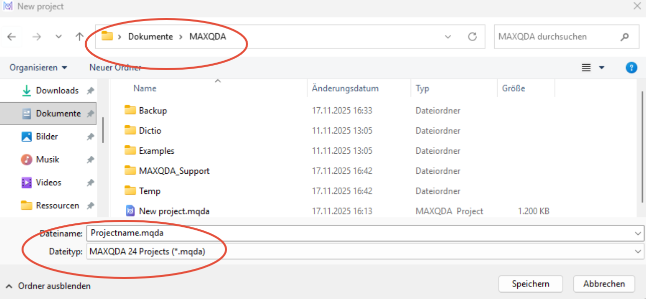 2) Save your new, empty project as an .mqda file locally in a folder on your computer:
