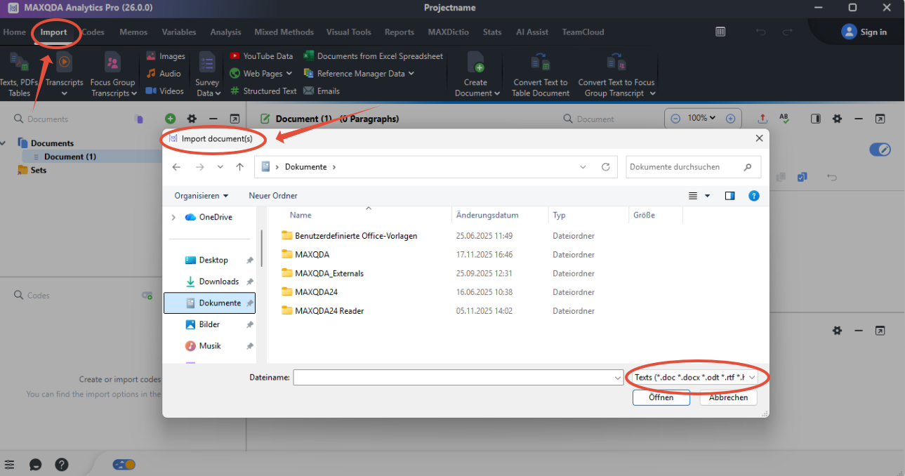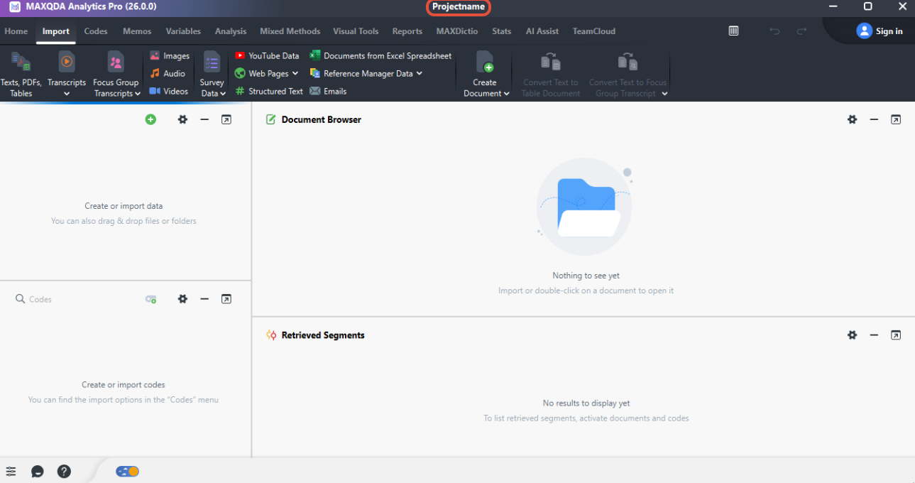 1) Click on New project in the MAXQDA start window (first page that opens when you start the app):
