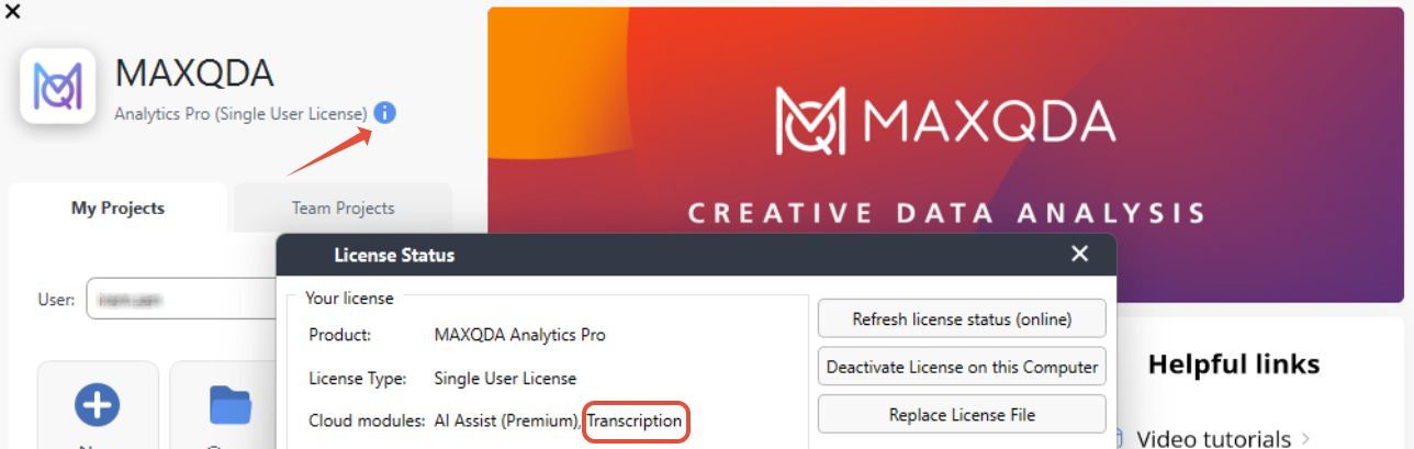 To enable automatic transcription in MAXQDA and ensure that your completed transcript is directly imported into MAXQDA, it is essential that the Transcription attribute is activated for your license.