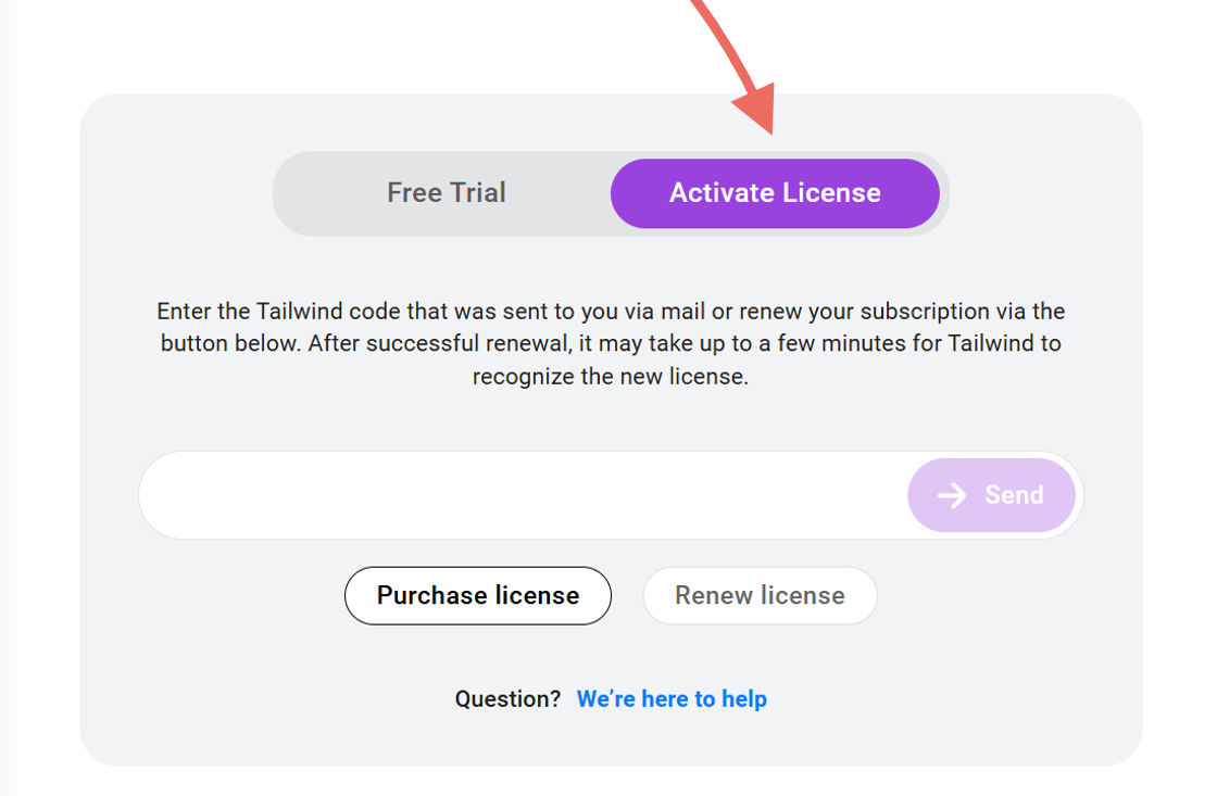Asegúrate de verificar tu cuenta confirmando tu dirección de correo electrónico. - En tu cuenta de MAXQDA, navega hasta el ícono de Tailwind e ingresa tu número de serie: